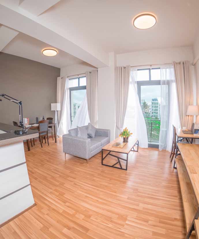 Luxury and Space in one place. Our premier one bedroom apartment provides luxurious bedroom with breathtaking views of Yangon which will gently wake you up in the morning and energize you for a fresh new day.